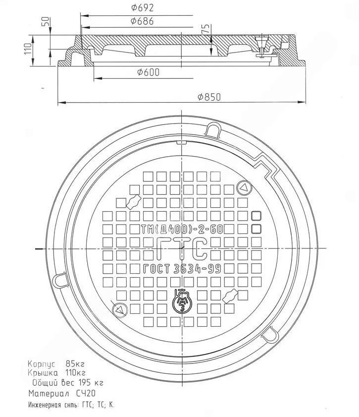 Каждый люк ТМ (Д400) К.1-60 проходит многоступенчатый контроль качества в соответствии с ГОСТ 3634-99. Проверяются: