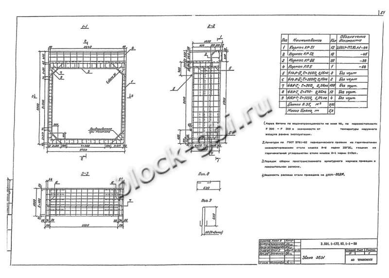 Железобетонные оголовка ЗП 31 для прямоугольных водопропускных труб армируются сетками и каркасами из стержней периодического профиля из углеродистой горячекатаной стали класса А-II. Монтажные петли конструкций изготавливаются из стержневой гладкой горячекатаной арматурной стали класса А-I или периодического профиля класса Ас-II.