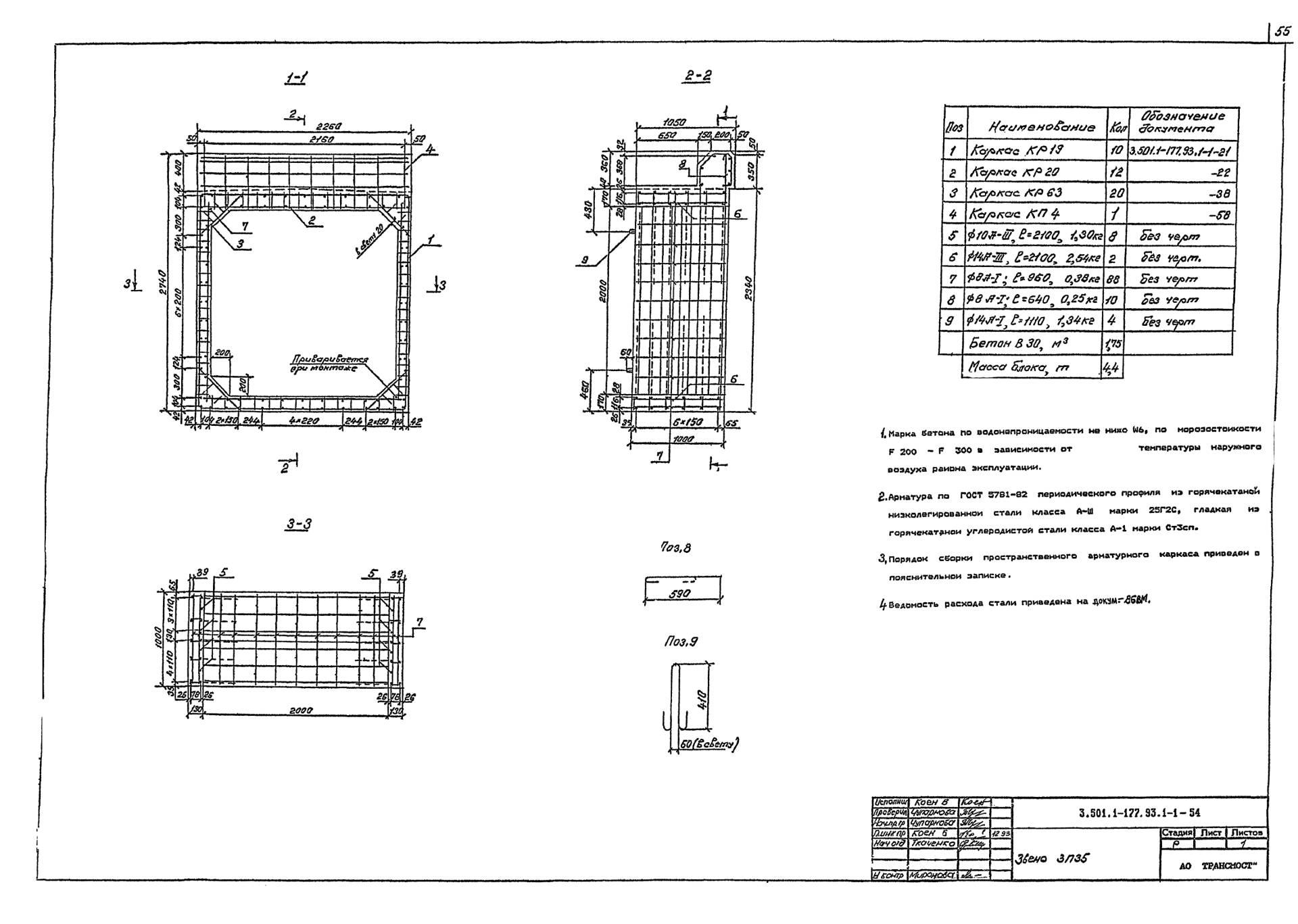Трубы водопропускные и оголовка ЗП 35 для прямоугольных водопропускных труб изготавливаются в соответствии с ГОСТ 24547-81 «Звенья железобетонные водопропускных труб под насыпи автомобильных и железных дорог», ОСТ 35-27.0-85 «Звенья железобетонные круглых и прямоугольных водопропускных труб под железные и автомобильные дороги» из тяжелого конструкционного бетона. Класс бетона по прочности на сжатие принимается не ниже В15. Класс бетона по морозостойкости назначается в зависимости от климатического района строительства не ниже: F200 – при средней месячной температуре воздуха наиболее холодного месяца в районе строительства выше -15˚С; F300 – при средней месячной температуре воздуха наиболее холодного месяца в районе строительства ниже -15˚С. Класс бетона по водонепроницаемости принимается не менее W6. Дополнительно в бетонную смесь изделий вводятся вохдухововлекающие, газообразующие и пластифицирующие добавки для сопротивления воздействию агрессивных химических веществ, содержащихся в воде и грунте.