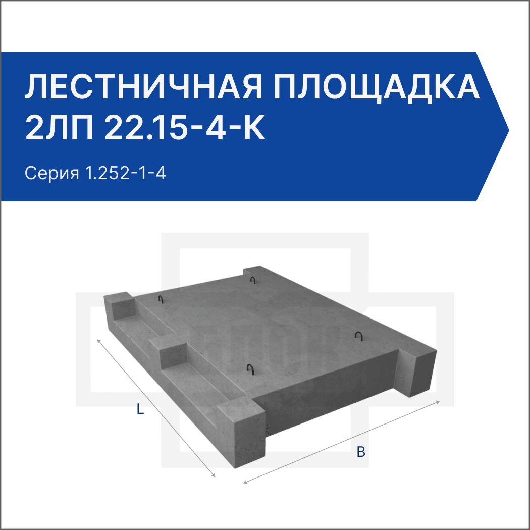 Лестничная площадка 2ЛП 22.15-4-к – это надежный и долговечный элемент для устройства площадок между маршами лестниц в зданиях различного назначения. Благодаря использованию качественных материалов и современных технологий производства, она обеспечивает прочность, устойчивость и долговечность конструкций. Для заказа качественных железобетонных изделий обращайтесь к профессионалам своего дела – компании ГК "БЛОК".